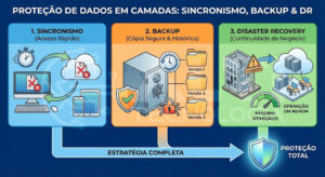 - Testes de Recuperação de Dados (DR – Disaster Recovery): Realizar testes regulares para verificar a integridade dos backups e garantir que o plano de recuperação de desastres funcione conforme esperado.